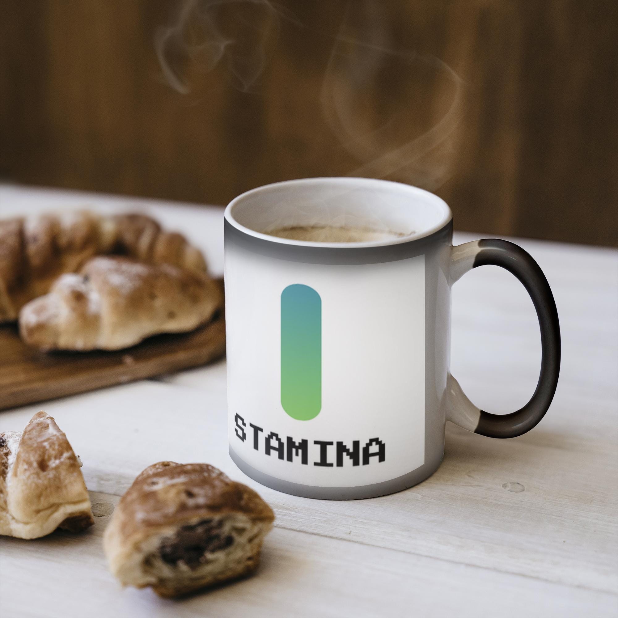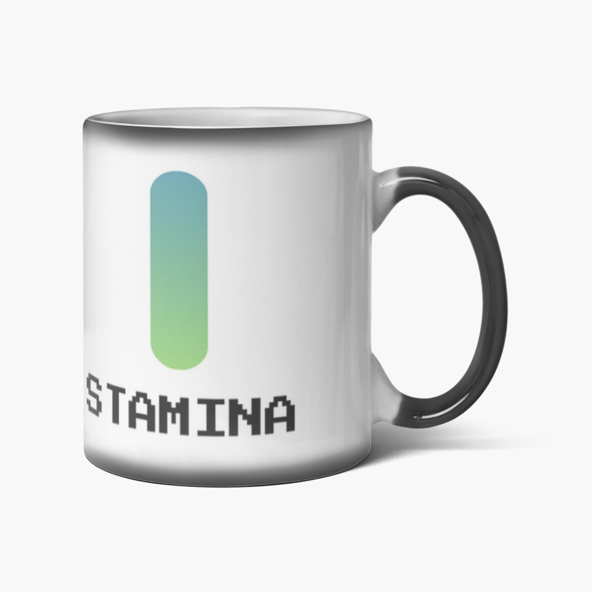 Level up your morning routine with this Stamina Magic Mug inspired by classic RPG energy bars. At first glance, it appears to be a sleek black ceramic mug, but when filled with a hot drink, the hidden stamina meter design slowly reveals itself in vivid detail. Perfect for gamers, fantasy fans, and anyone who runs on coffee and determination, this heat-reactive mug brings a subtle magical touch to everyday rituals. A fun novelty gift and a must-have for game-themed desks and cozy battle stations.